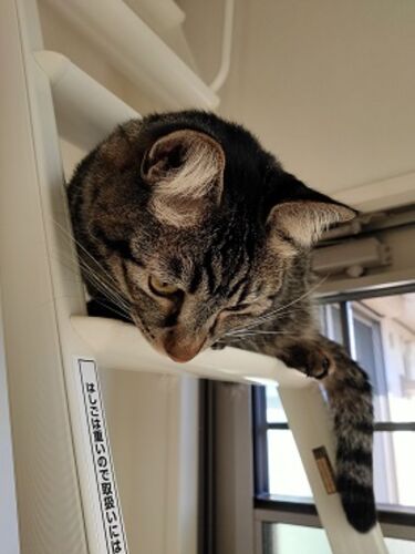 こんばんは、にゃん母です。 1月も今日で終わり。 この調子だと、2022年も一瞬で終わるな・・・・ お布団を干すのに、大トロも一緒になってベランダに出て来ると危ないので、一時的に寝室に監禁。 そしたら、梯子に登って干す様子を眺めてた。 「ふん!」っ…