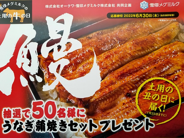オークワ・雪印メグミルク共同企画 土用の牛の日うなぎプレゼントキャンペーン